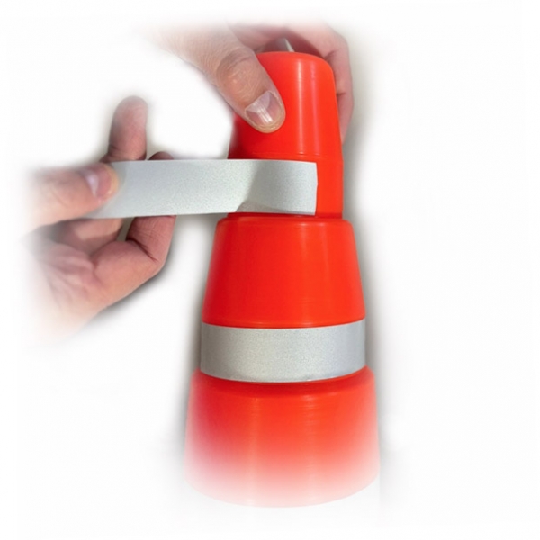 2 bandas autoadhesivas de Reflectivo Grado Ingenieria Microesferas de Vidrio color Blanco para cono de 50 cm (2,5 x 60 cm)
